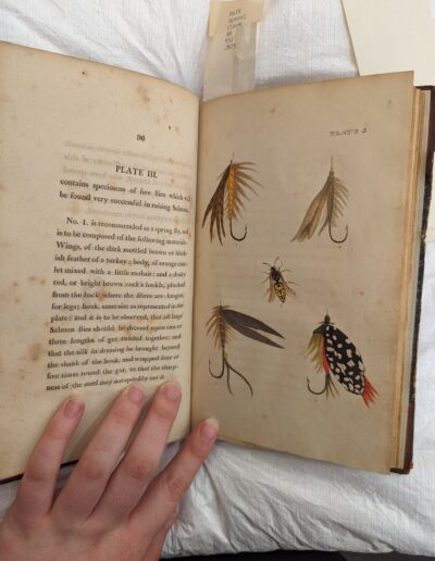 The copy of The Fly Fisher’s Guide included in this exhibition suggests Harris’ commitment to the art of book making. It features several high-quality colour print-plates and carefully laid out type. The Harris press is remembered for its artistry and commitment to expanding its technological capacities.